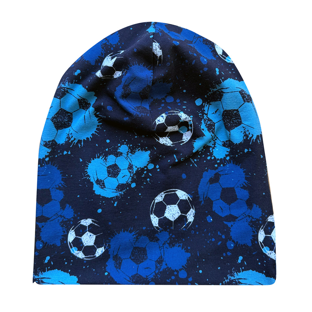 Wollhuhn Öko Long Beanie / Wendemütze, Ganzjährig, Zweilagig, Fußball Blautöne